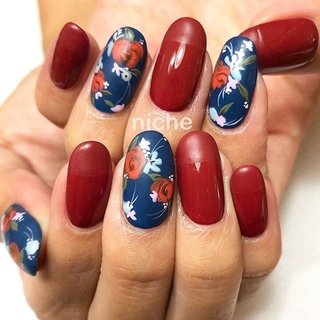 おすすめ順 フラワー ネイビー 赤ネイルのネイルデザイン ネイルブック